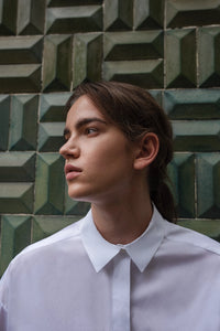 At the heart lies a refined yet assertive femininity, reinterpreting the tradition of men’s tailoring with restraint and contemporary sensitivity. Impeccable collars, concealed plackets, generous pointed cuffs – details that define a discreet luxury, instantly recognizable without ever raising its voice.